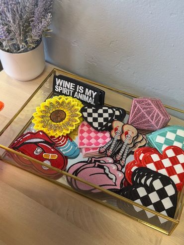 Select from a curated collection of patches, lace, feathers, chains, pins, charms, and must-have add-ons.